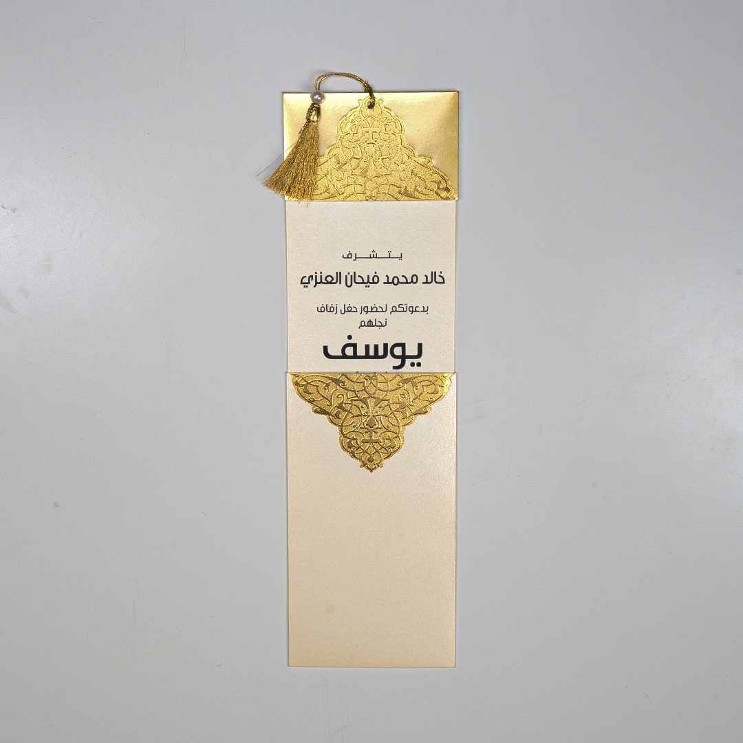 • مقاس مميز 10 × 24 سم: حجم طويل وأنيق يعزز جمال التفاصيل ويضيف لمسة فريدة للدعوة.