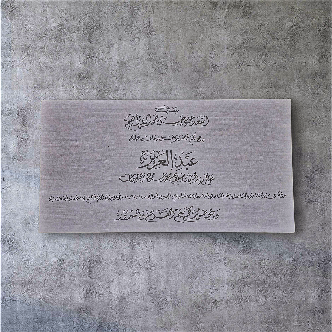 تأتي البطاقة بمقاس 24.5 × 10.5 سم لتوفر مساحة مثالية لعرض تفاصيل الدعوة بأسلوب منسق وجذاب، مع إمكانية التخصيص حسب طلب كل عميل.